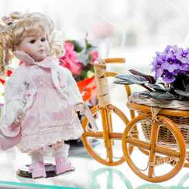 — декоративные велосипеды, коляски и корзины, домовые, подарочные пакеты и открытки ручной работы.